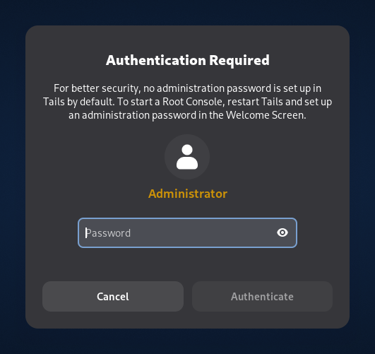 - Improve the message when an administration password is required to open an application but no administration password was set in the Welcome Screen.